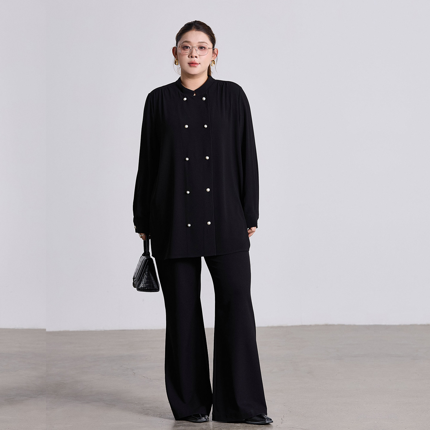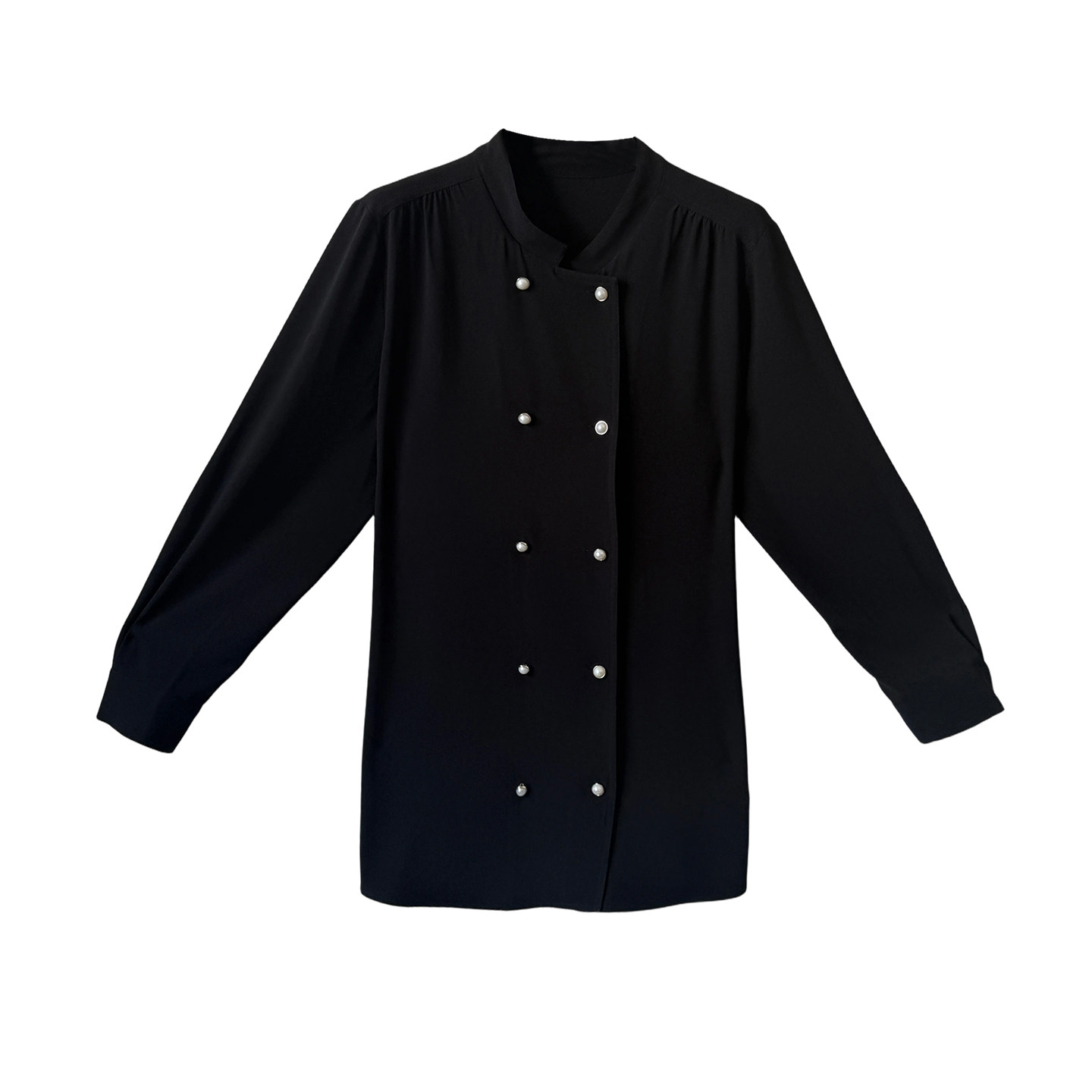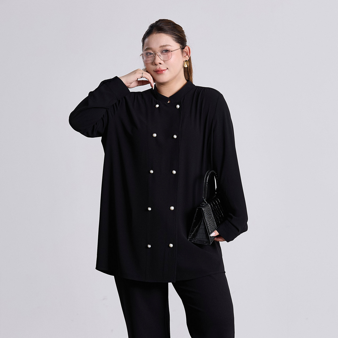 高级感双排扣雪纺衬衫女2026春装新款大码胖mm宽松显瘦长袖衬衣
