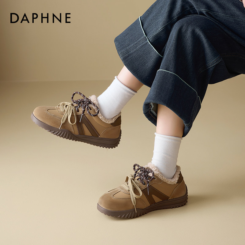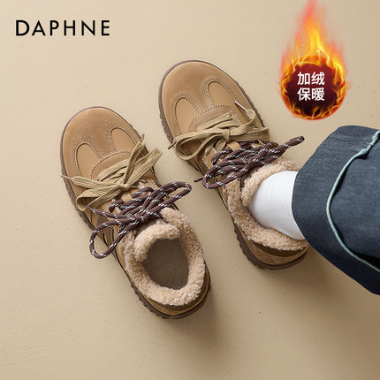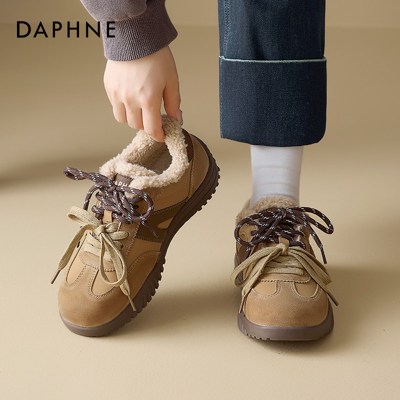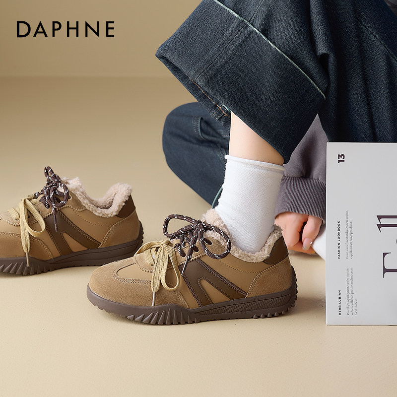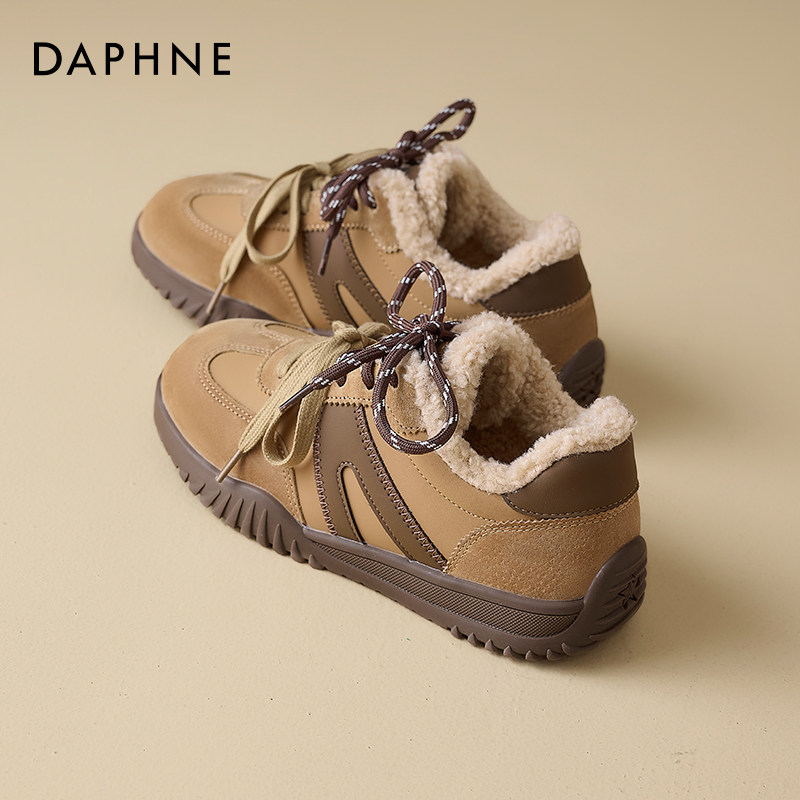 达芙妮冬季加绒德训鞋雪地靴女款2025防滑女士加绒运动鞋保暖棉鞋