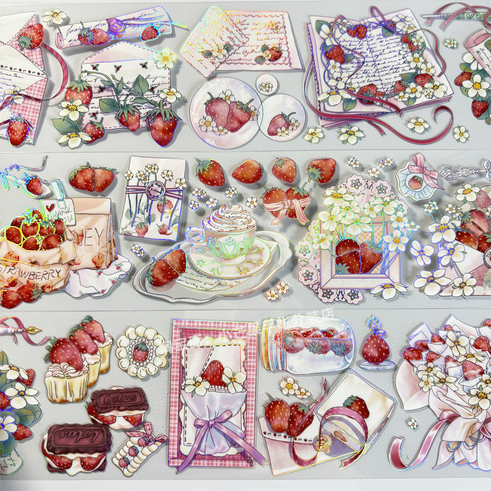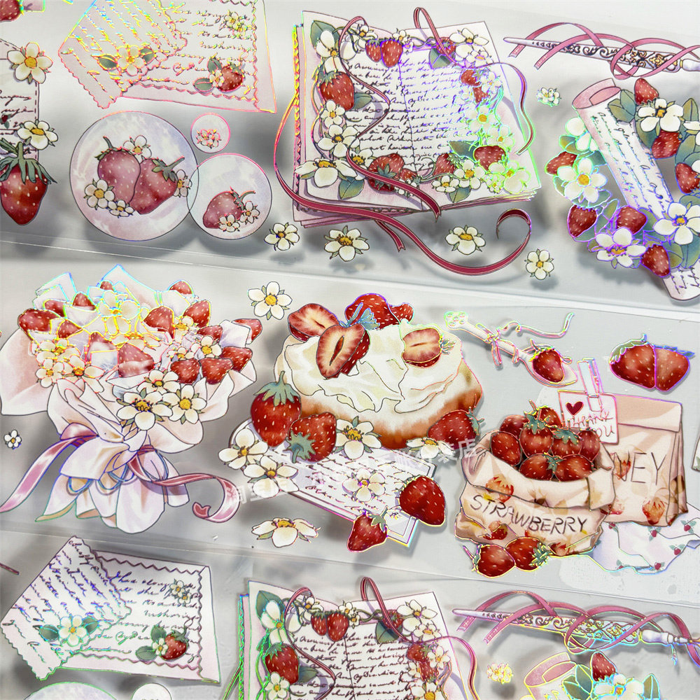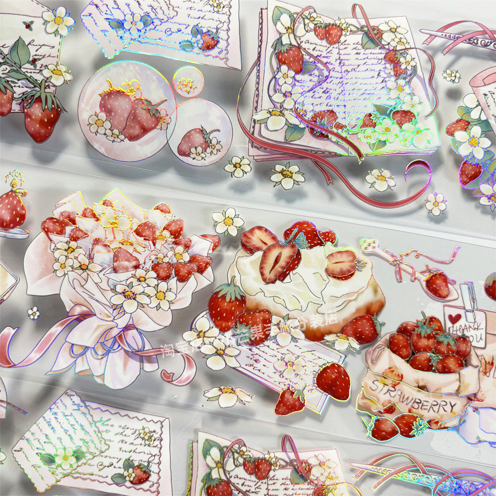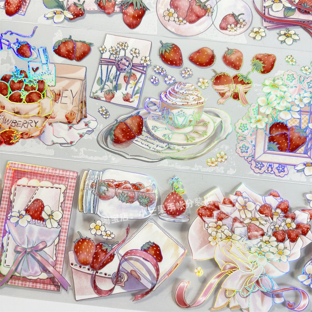 手帐分装胶带草莓罗曼史五宝文创草莓古风PET素材账流麻贴纸咕卡