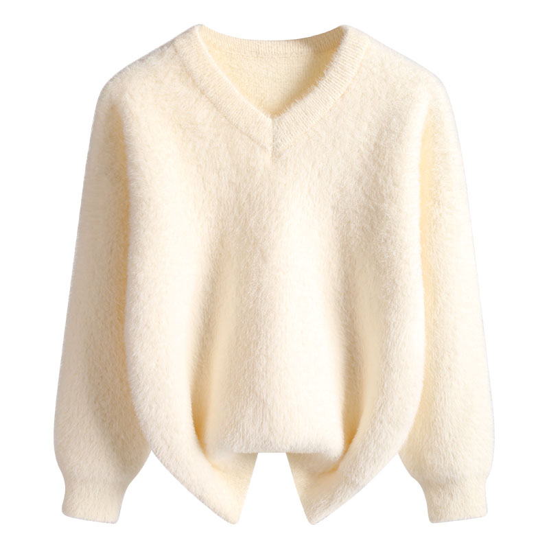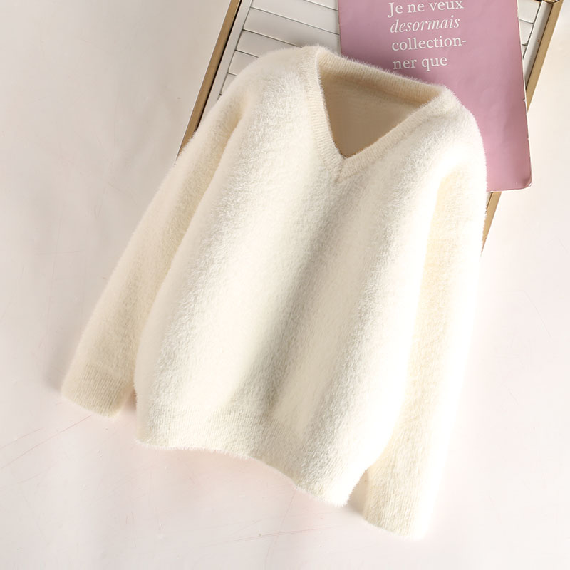 儿童水貂绒白色毛衣双面绒秋冬款男童女童加厚上衣女宝宝V领软糯