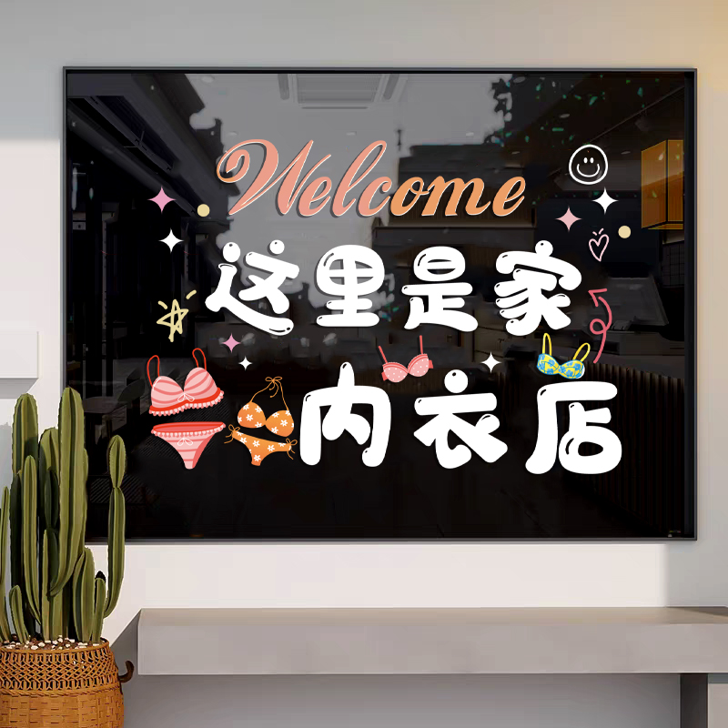 创意内衣店玻璃门贴纸童装童袜服装店橱窗广告文字装饰贴画静电贴