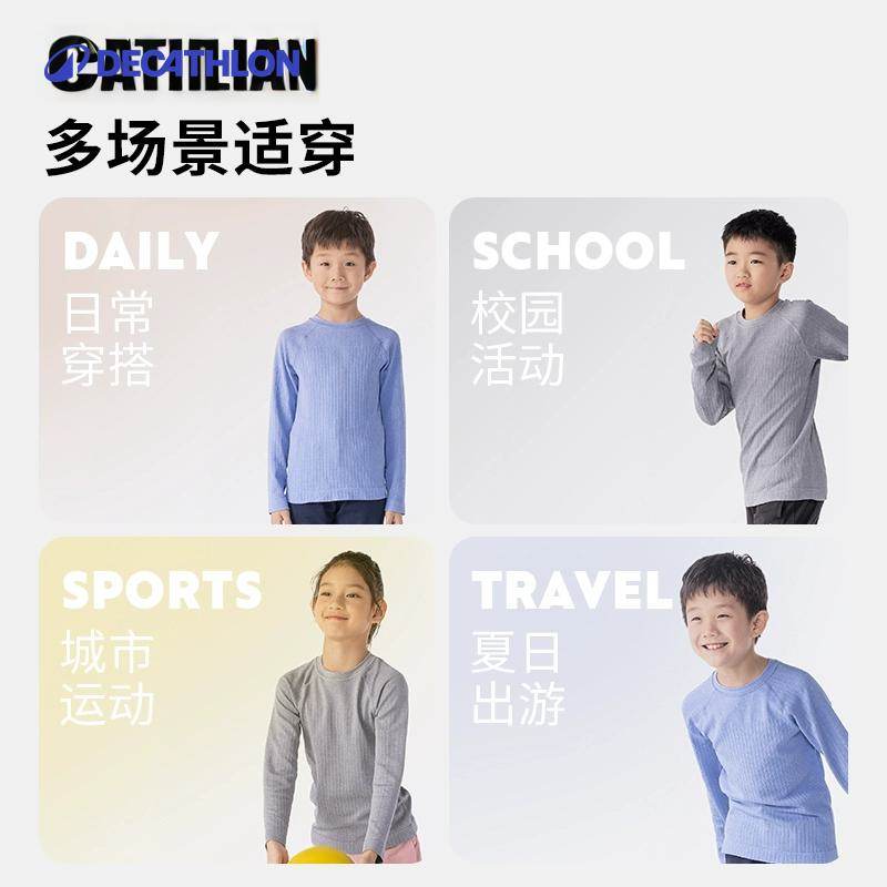 迪卡侬儿童速干衣运动长袖T恤训练服打底针织弹力上衣男童女KIDC