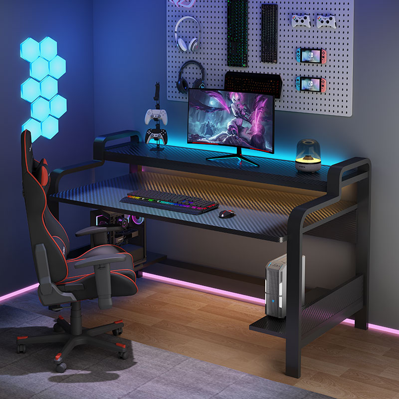 电脑桌台式游戏电竞桌椅组合套装家用书桌书架一体碳纤维办公桌子