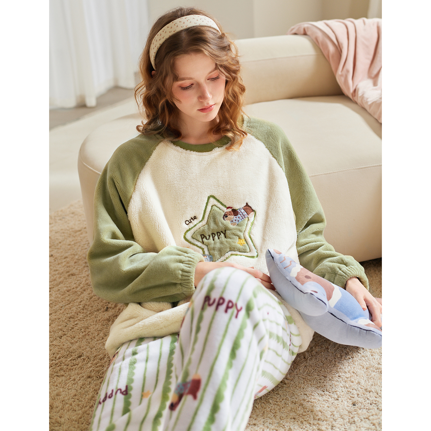 芬腾女珊瑚绒睡衣秋冬季加绒加厚