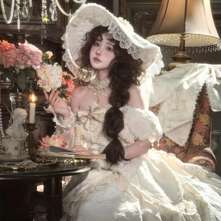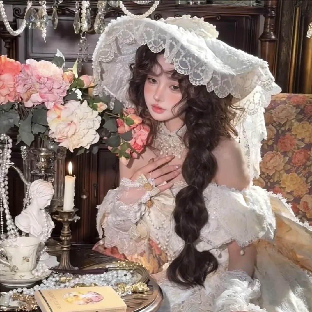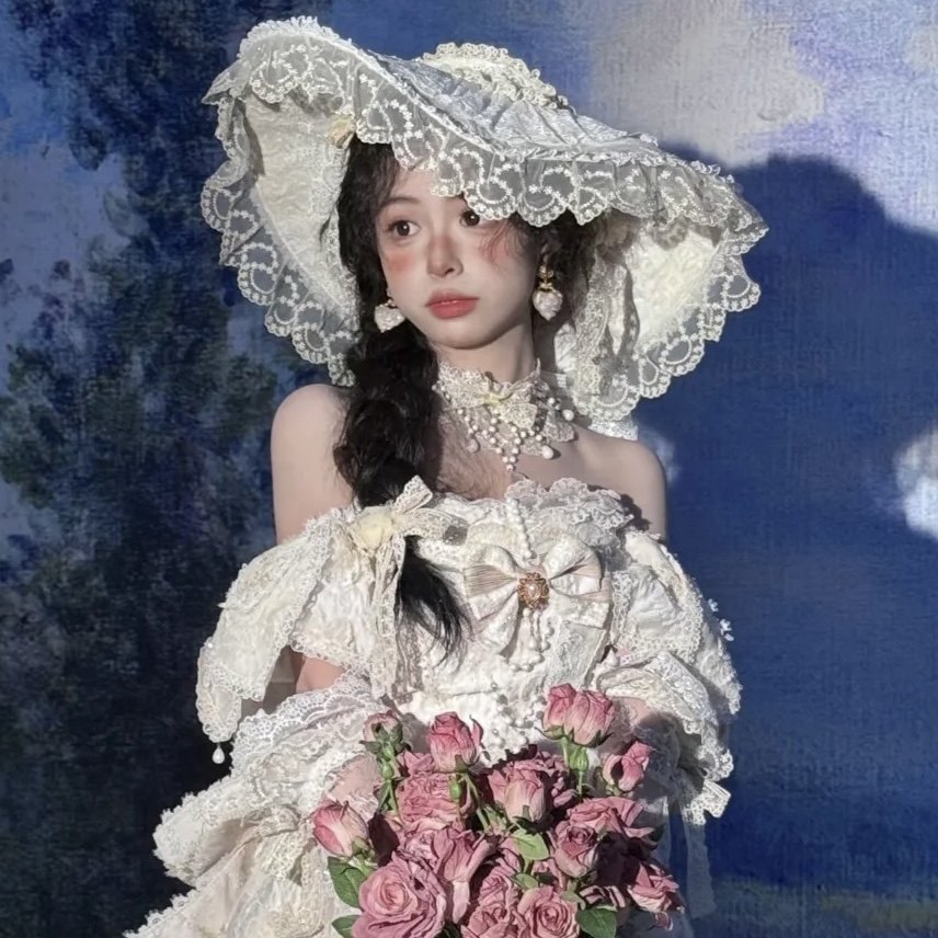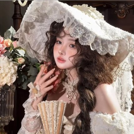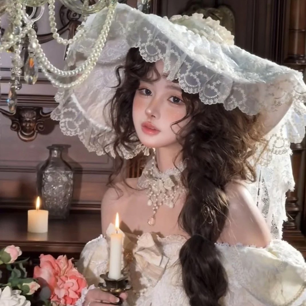 白色蕾丝礼帽洛丽塔新娘婚礼头纱影楼样片拍摄复古造型摄影道具