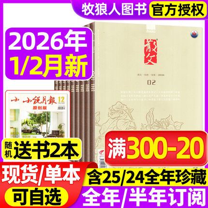 散文杂志2026年1/2月(2025年1-12月/全年/半年订阅)人民文学文摘类期刊杂文选刊微型小说百花语文读物期刊2024年非读者意林过刊