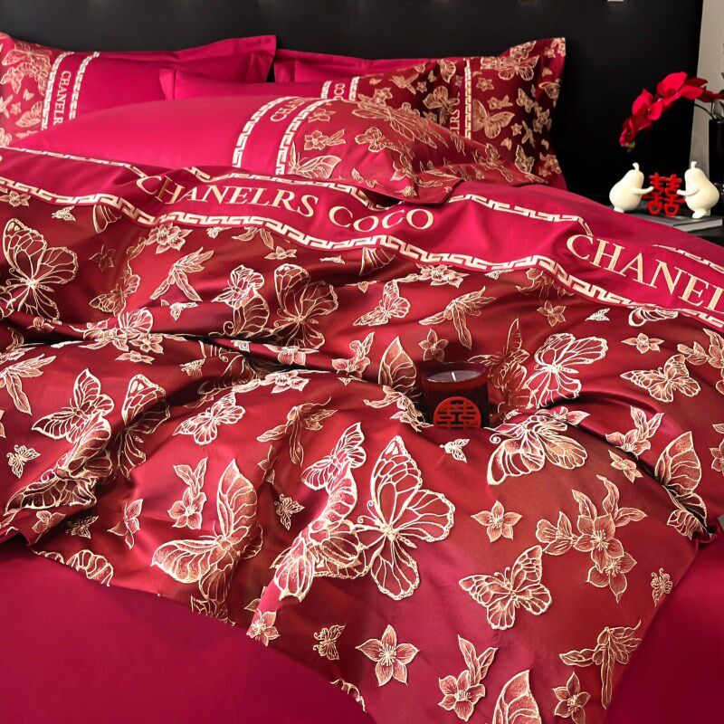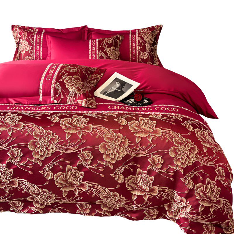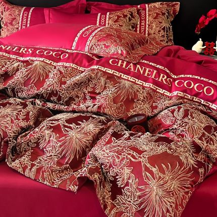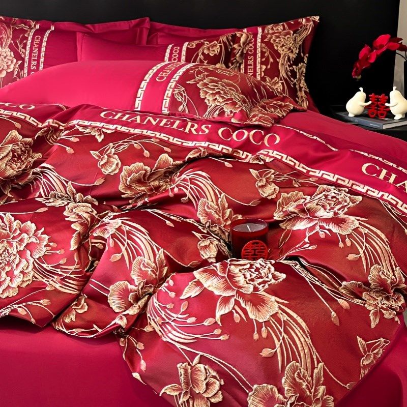 中式婚庆四件套大红色新婚床单被套纯棉高档结婚床上用品婚房陪嫁