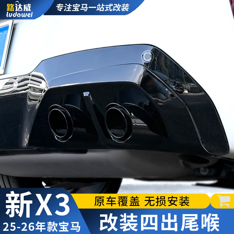 适用25款宝马X3尾喉运动全包四出尾嘴x3改装尾唇排气管罩黑化套件