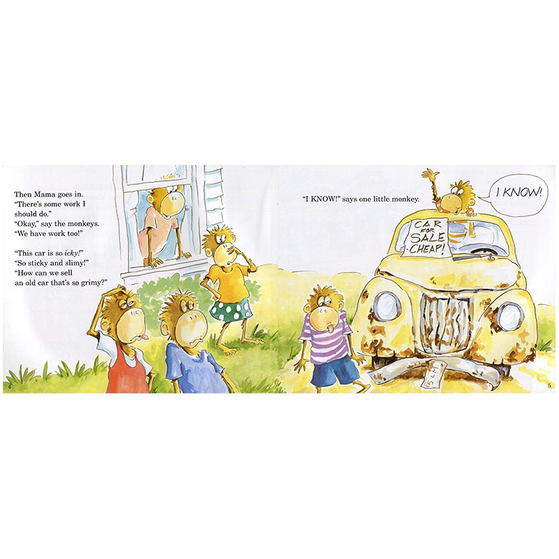 正版儿童英文原版绘本 Five Little Monkeys Wash the Car 五只小猴子洗汽车 平装 幼儿原版英语绘本书 启蒙故事书 小豆豆英文童书