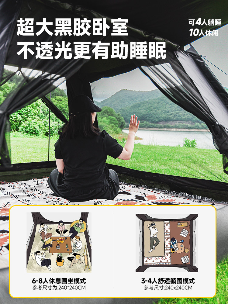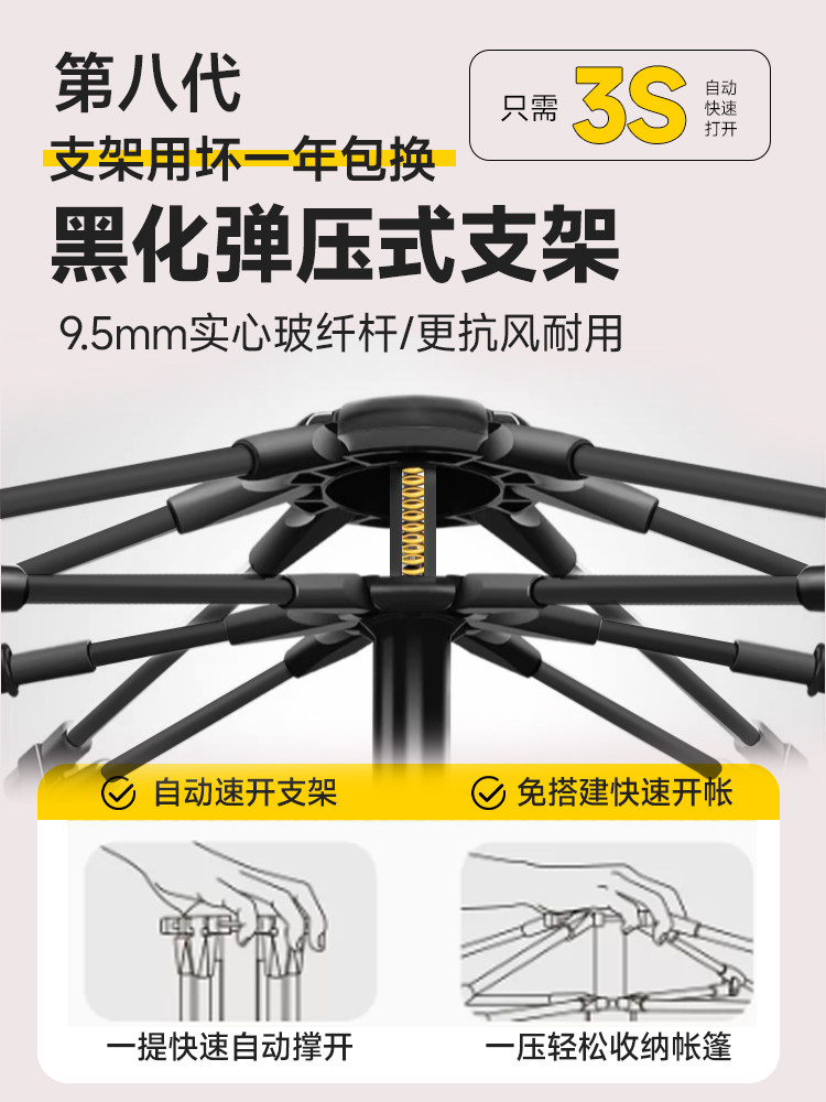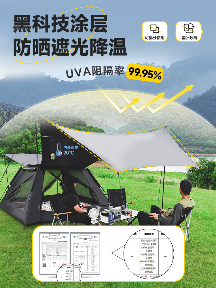 黑武士户外速开自动帐篷黑胶天幕野外野餐公园露营防雨沙滩遮阳蓬