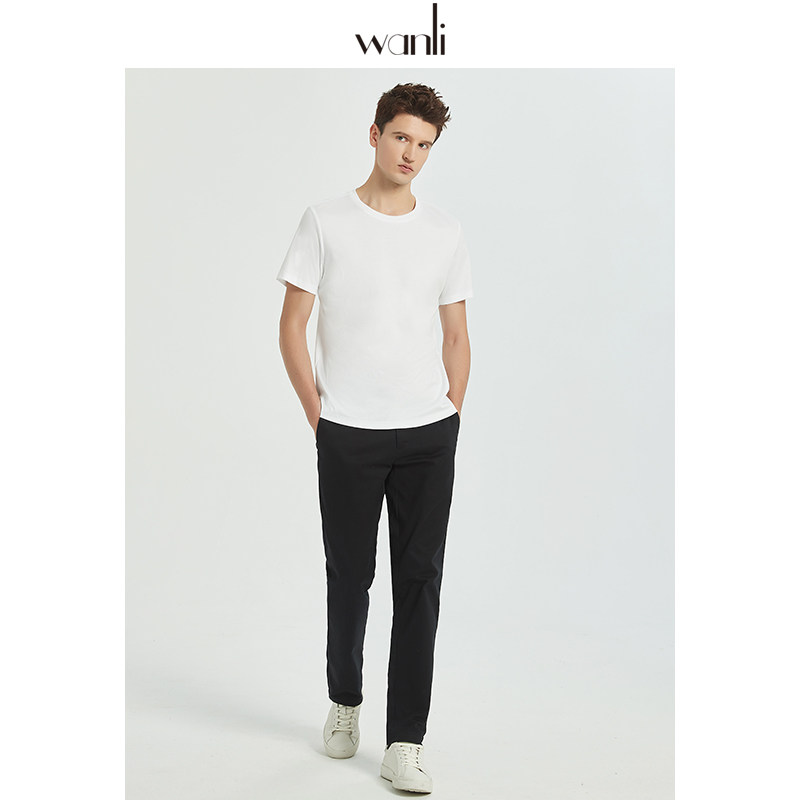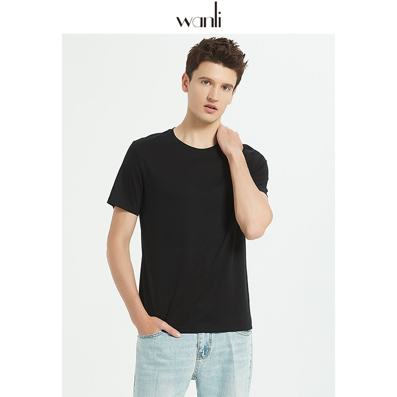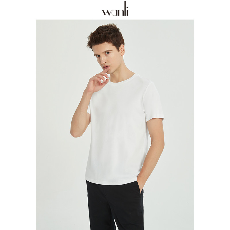 万丽男装纯棉t恤男宽松匹马棉白色t恤男短袖纯色宽松纯棉夏季