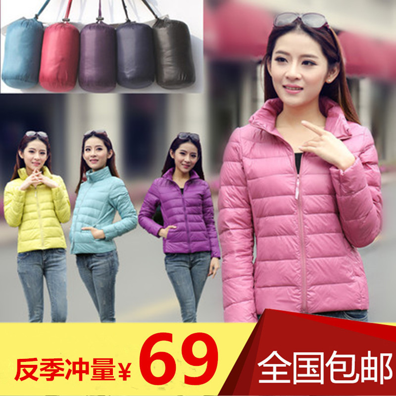 女士轻薄羽绒服短款连帽修身薄款大码女装妈妈装冬外套
