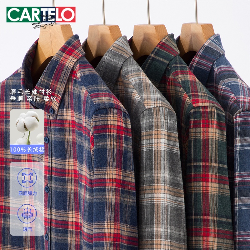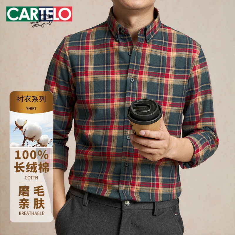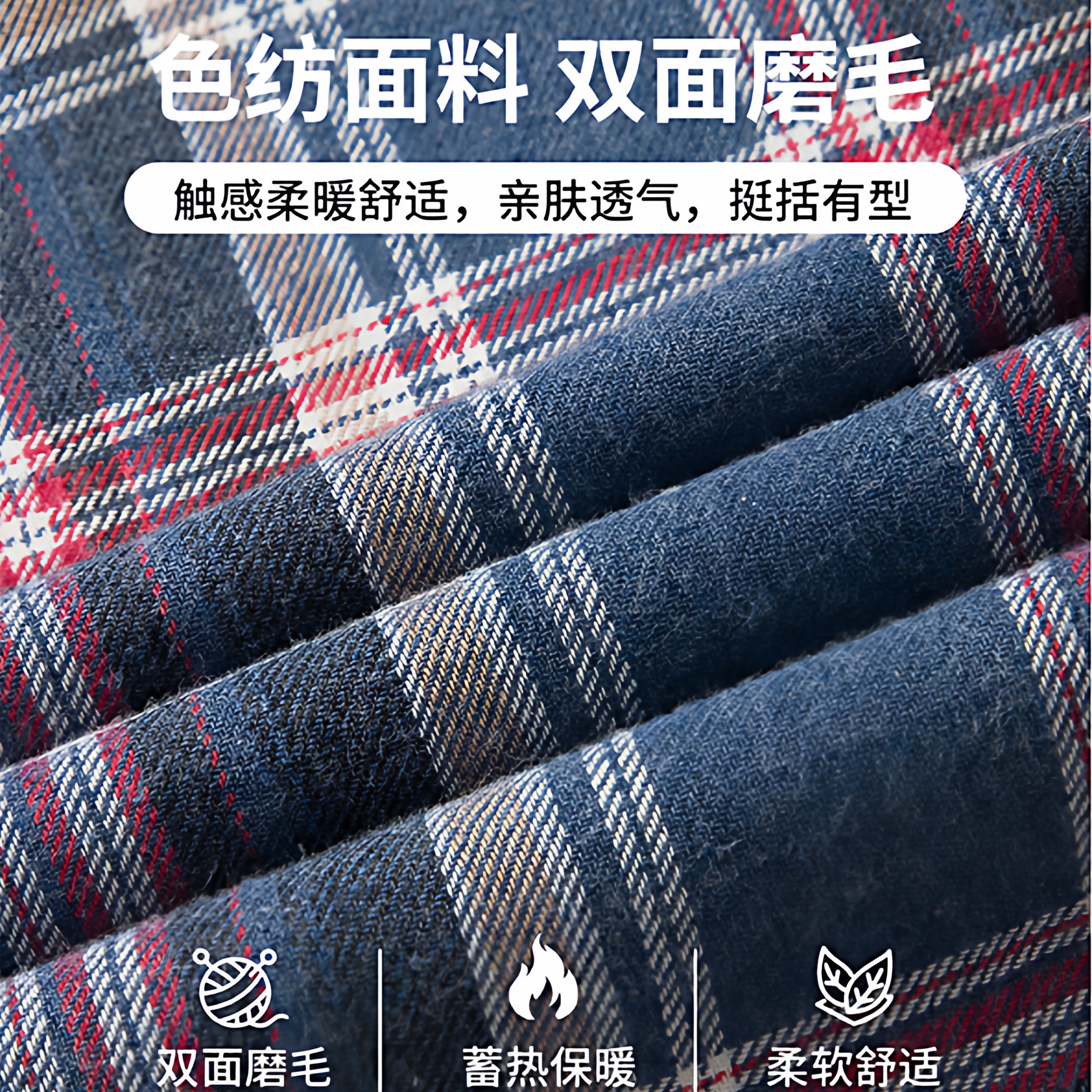 2025秋冬男士加厚纯棉长袖衬衫磨毛上衣休闲格子衬衣外套潮流男装