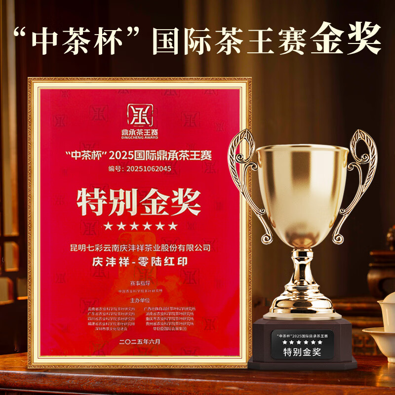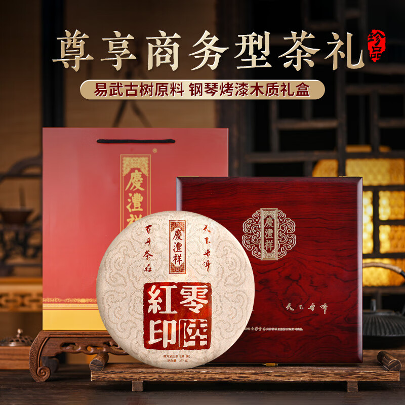 【礼赠佳品】七彩云南庆沣祥普洱茶零陆红印357g易武普洱熟茶