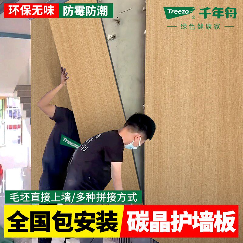 千年舟木饰面碳晶板护墙板无v缝板竹木纤维集成墙板室内墙面装饰