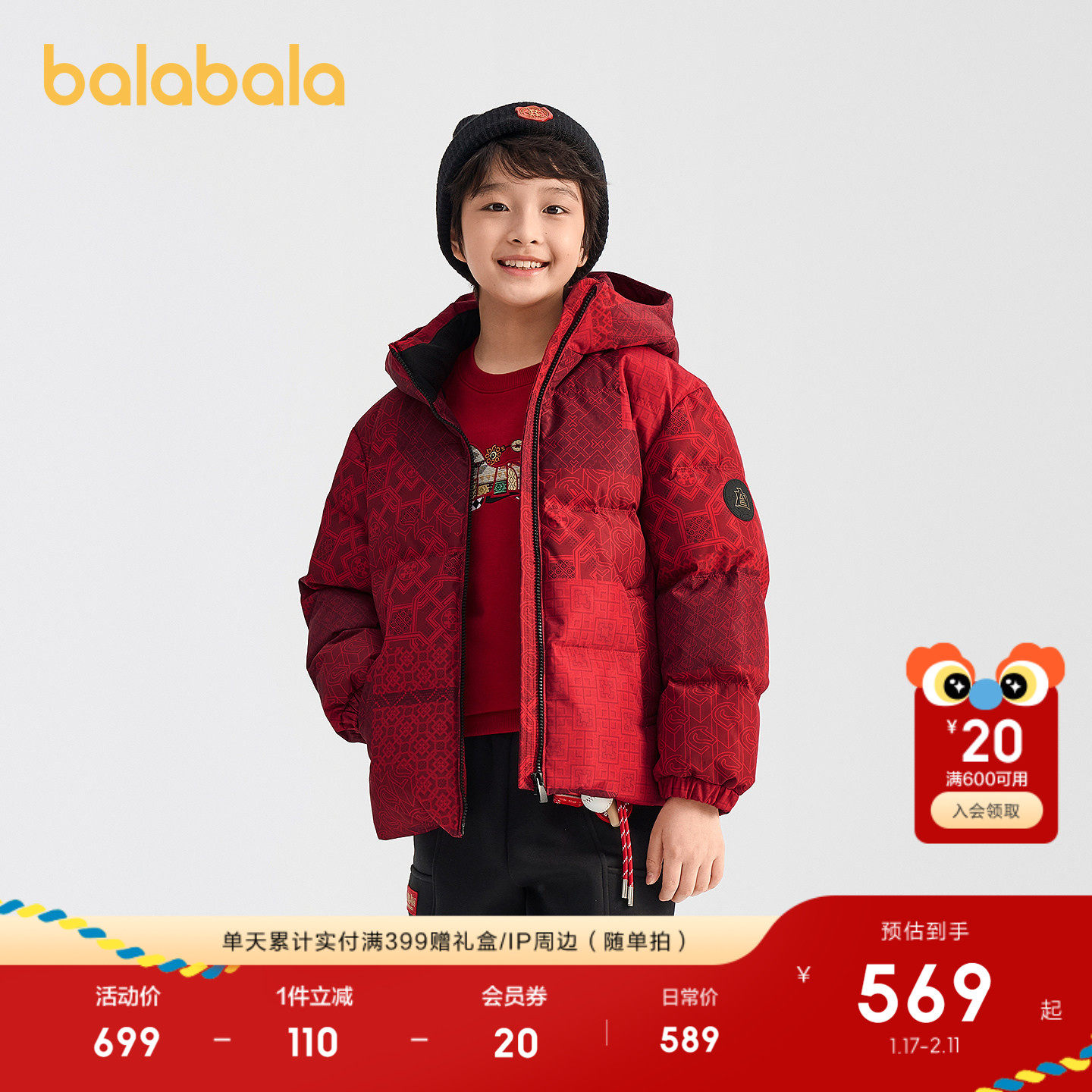 【商场同款】巴拉巴拉童装儿童羽绒服男童2026新款春装红色拜年服