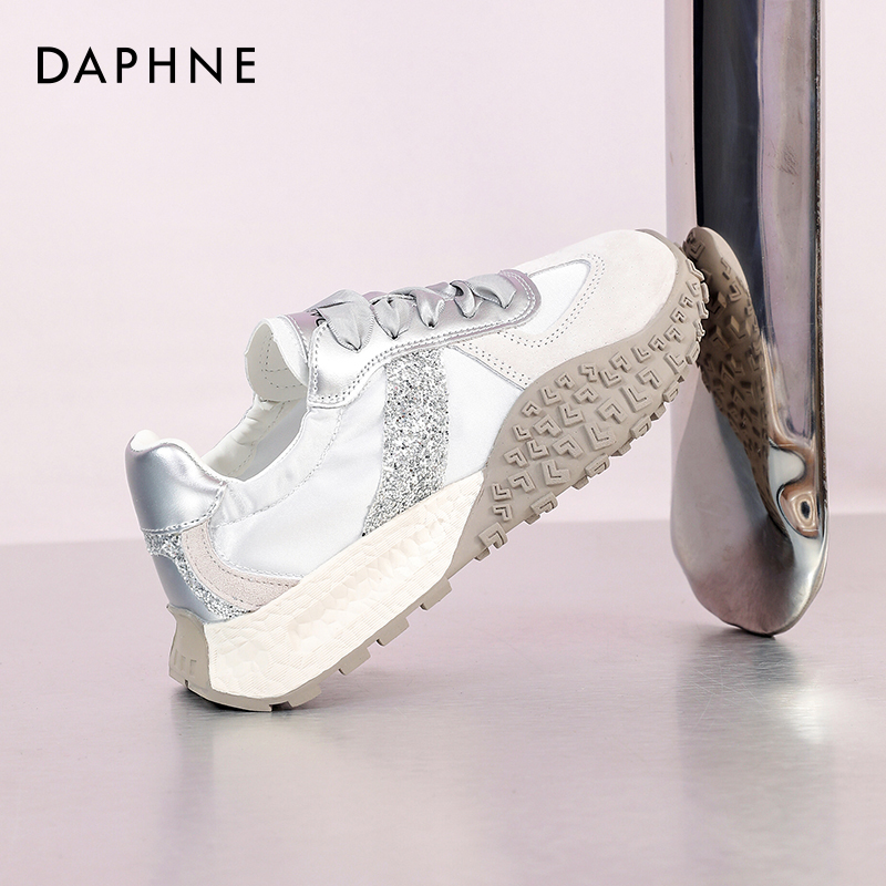 达芙妮银色德训鞋女休闲鞋小白鞋