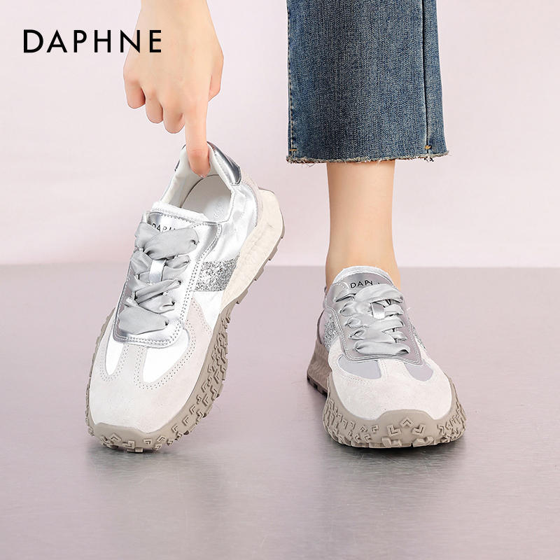 达芙妮厚底银色德训鞋女2025新款秋季百搭鞋子女芭蕾运动鞋小白鞋