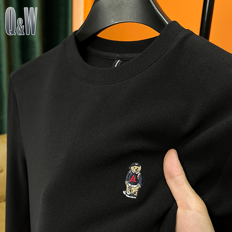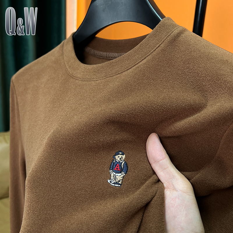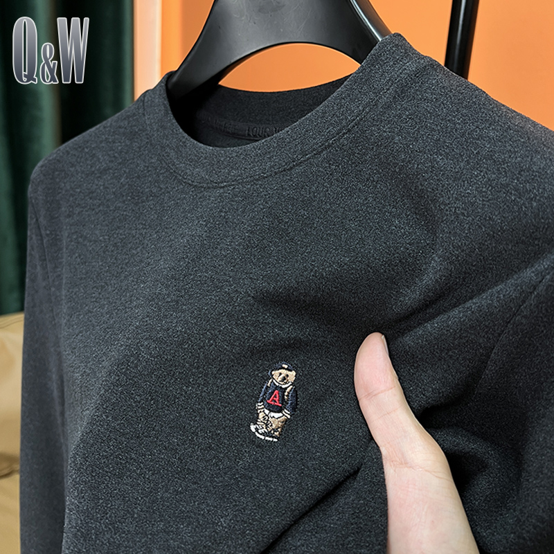 品牌刺绣t恤男圆领冬季磨毛双面绒打底衫男长袖卫衣潮流德绒秋衣