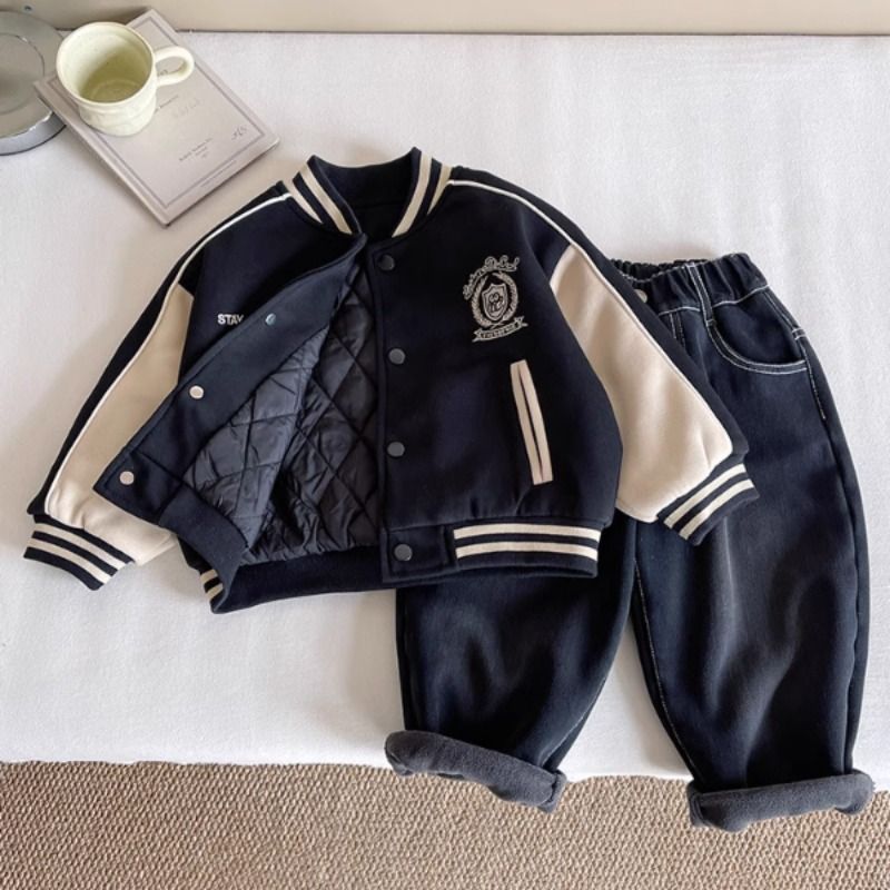 2025冬季新款童装儿童韩版学院风棒球服外套男女童洋气棉服夹棉