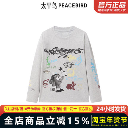 太平鸟女装年冬季新款联名合作系列印花长袖T恤