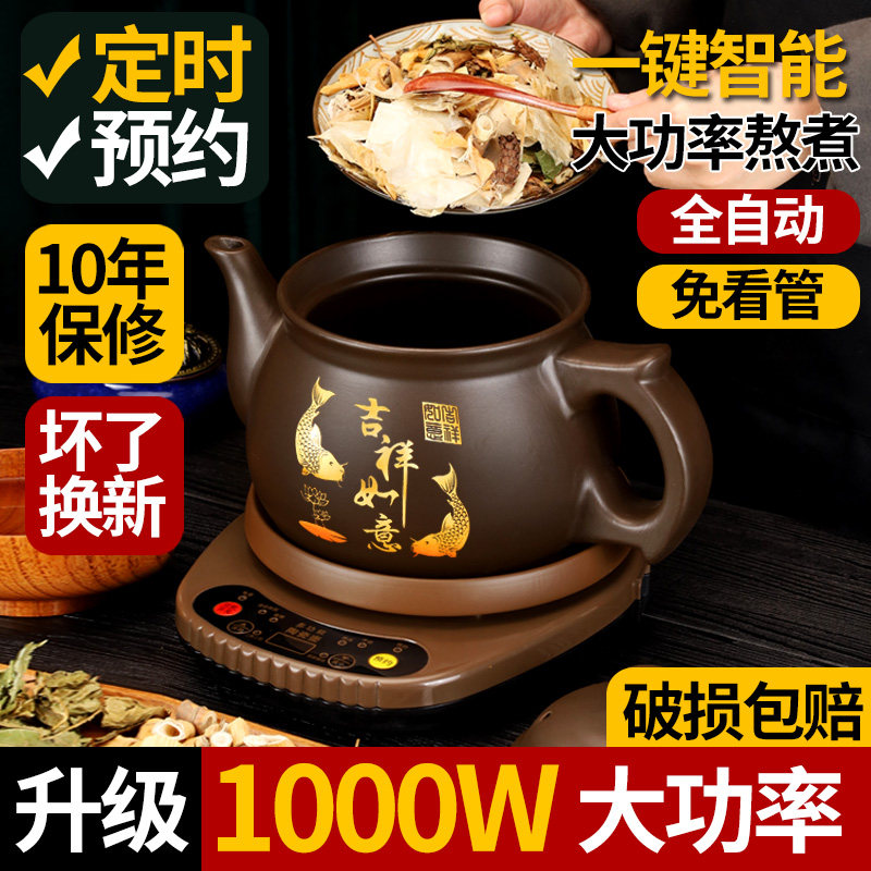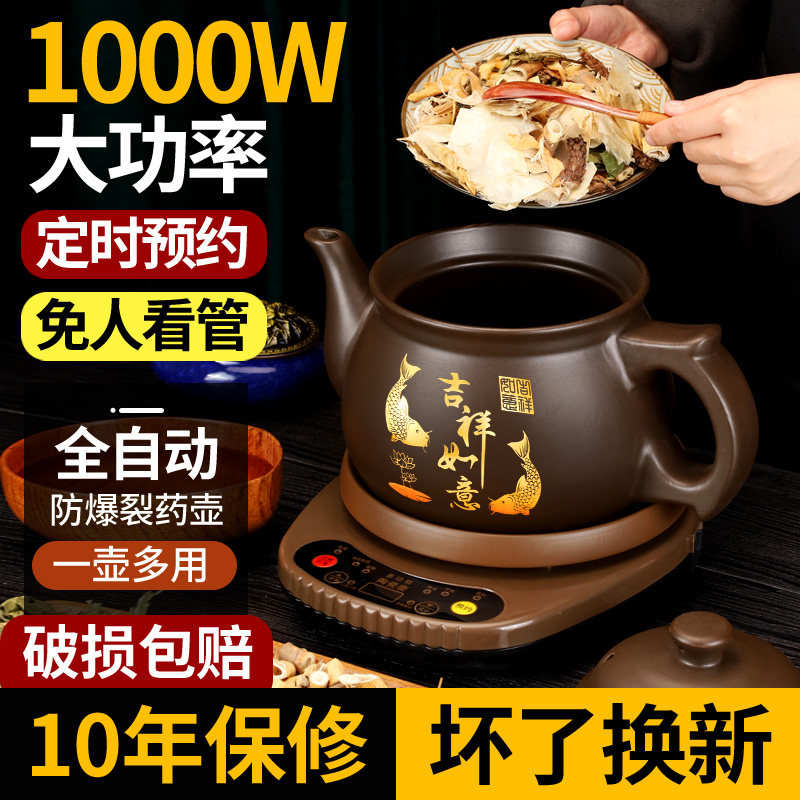 老郎中1000W自动中药电煎壶紫砂煎药壶煮炖熬药罐家用砂锅中医药