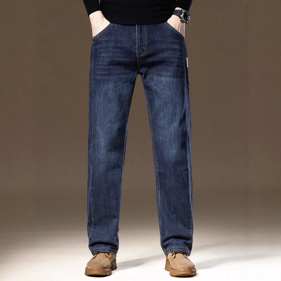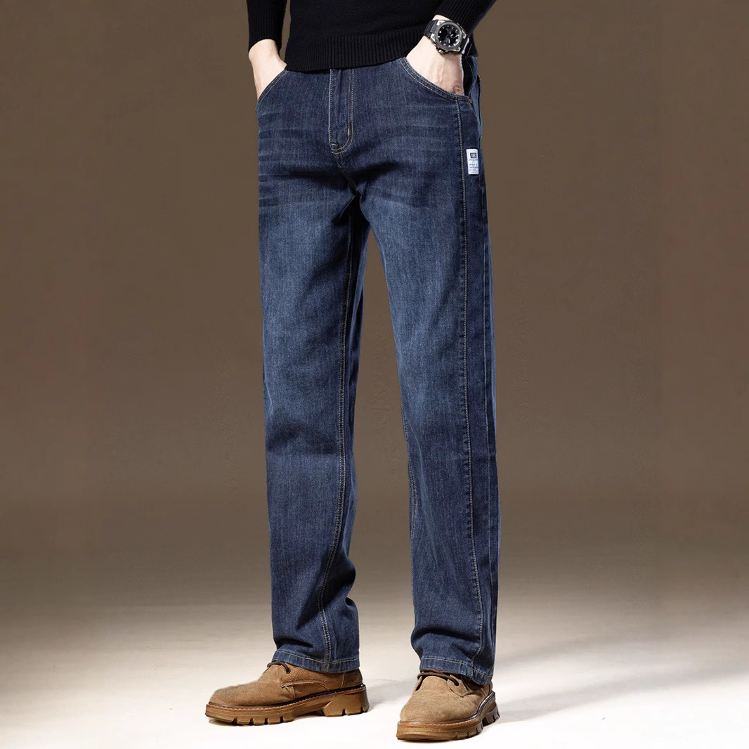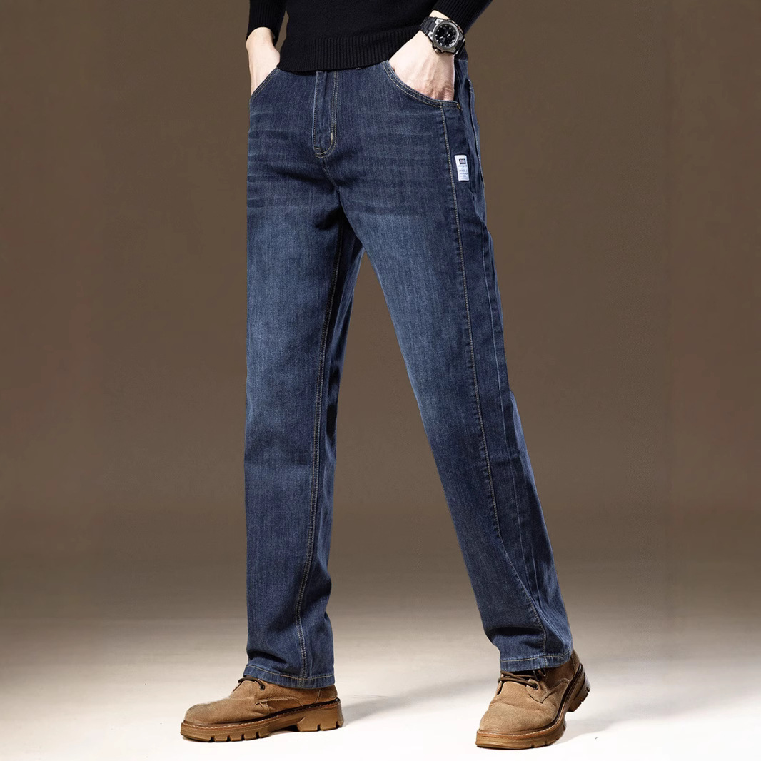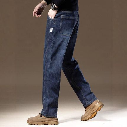 高端轻商务直筒蓝色男士牛仔裤春季新款宽松复古休闲大码长裤子男