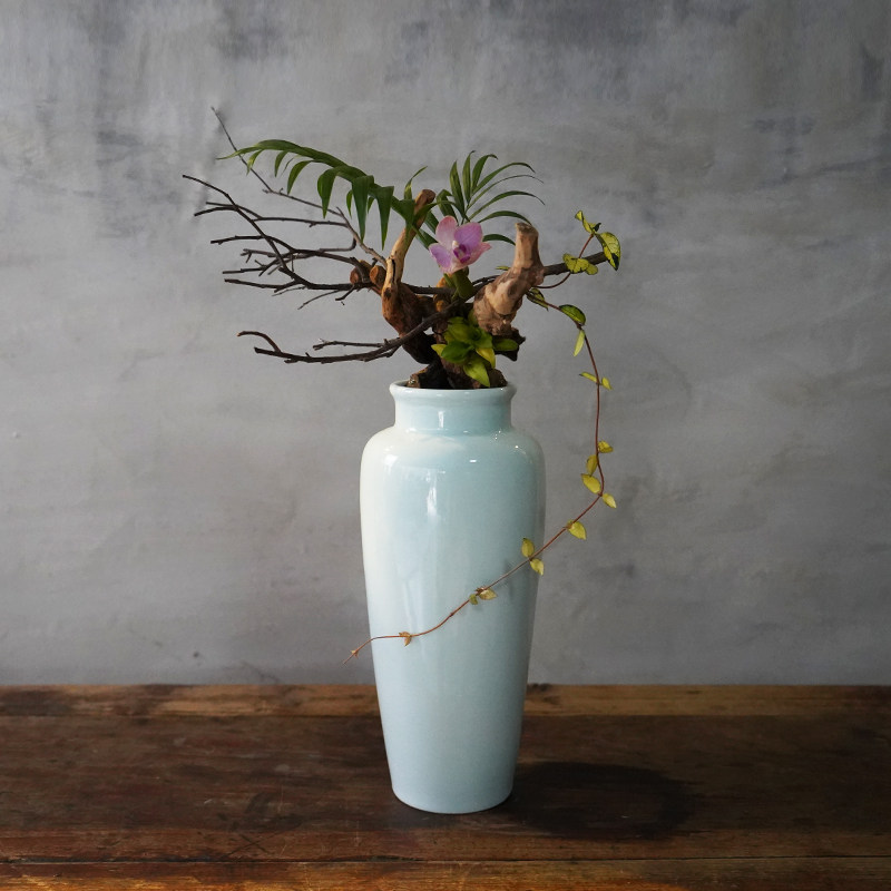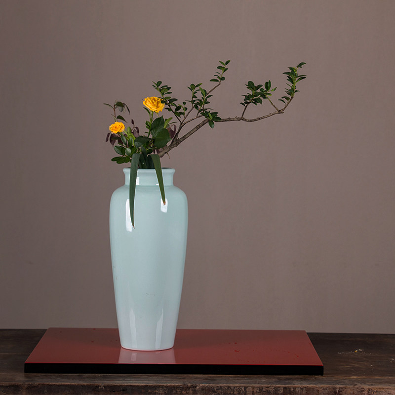 青瓷花瓶摆件柳瓶柳叶瓶陶瓷小原流中华花艺插花花道日式中式器皿