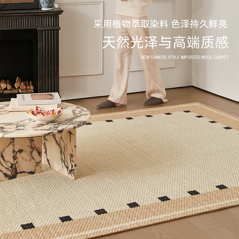 进口羊毛地毯客厅2025新款免洗可擦床边地垫法式奶油风卧室中古风