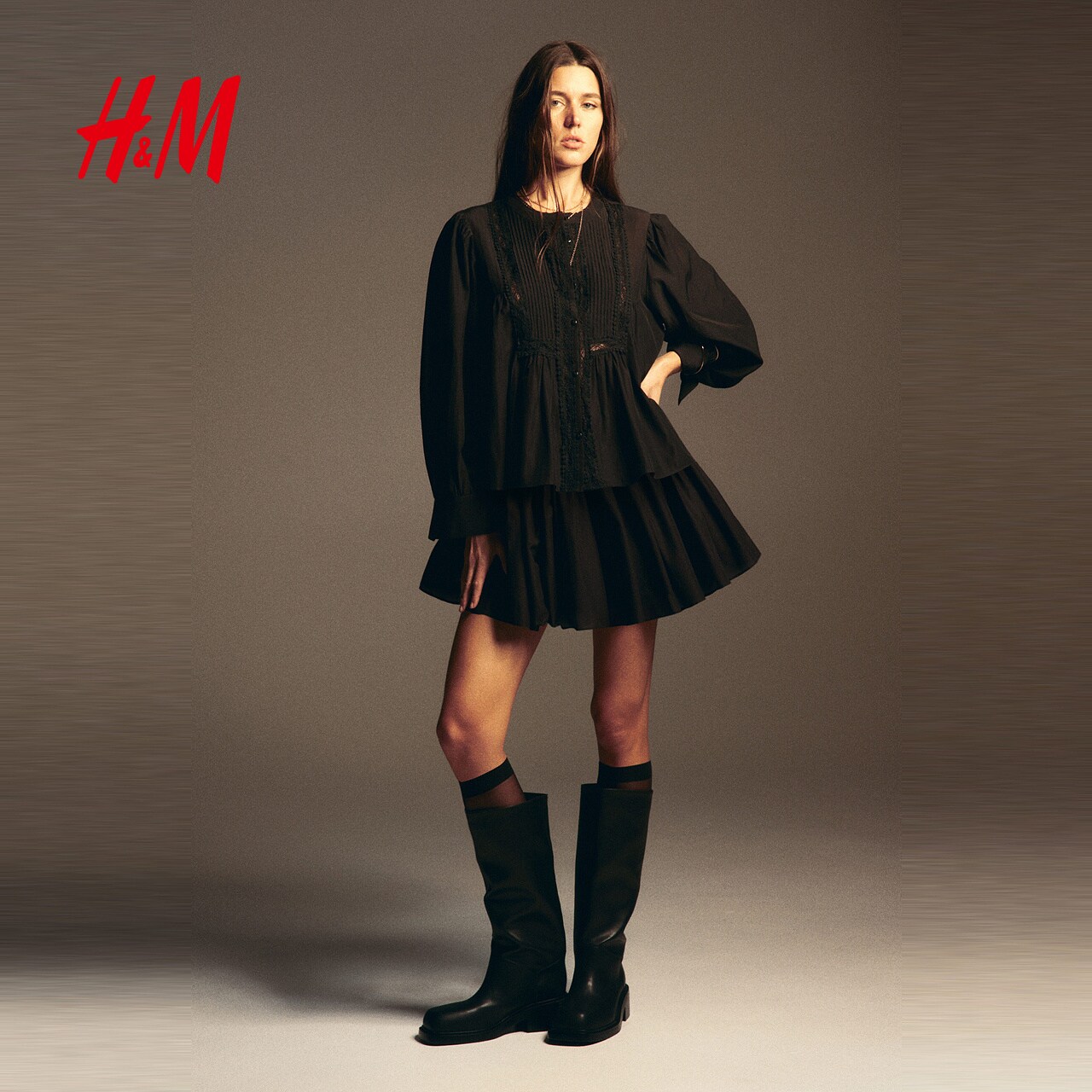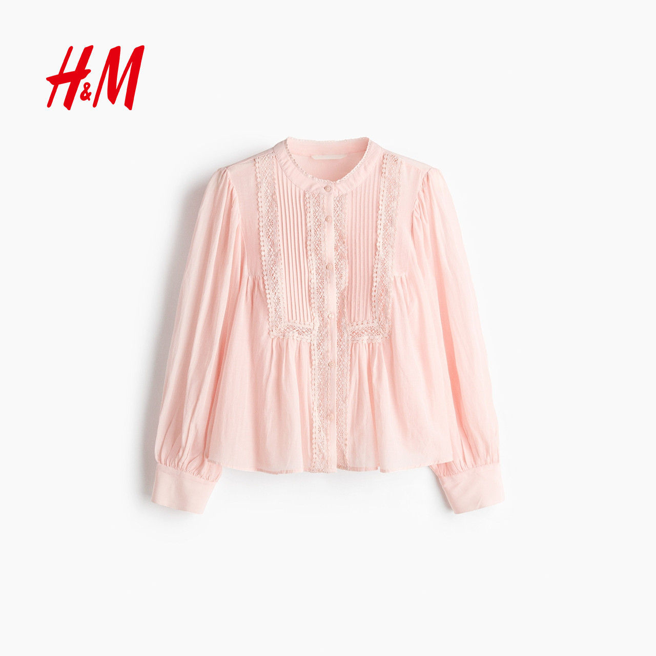 HM女装衬衫2026春季新款蕾丝白气质时尚通勤简约细褶上衣1323939
