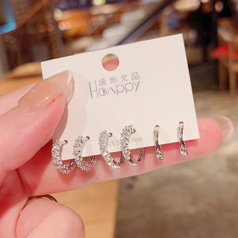 高级感气质锆石小耳圈耳扣女韩国网红百搭三件套耳钉耳环组合套装