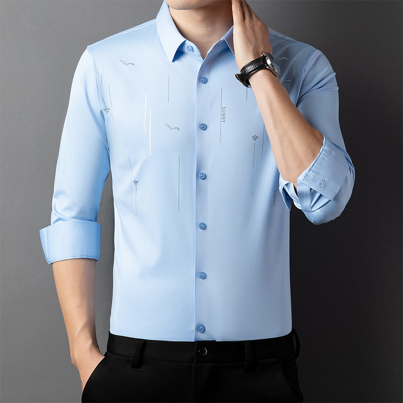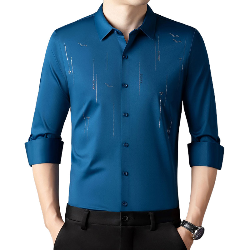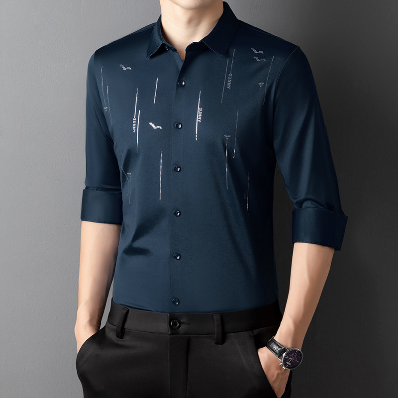 皮尔卡丹春秋款男士长袖衬衫高档中年商务休闲无痕寸衫冰丝上衣潮