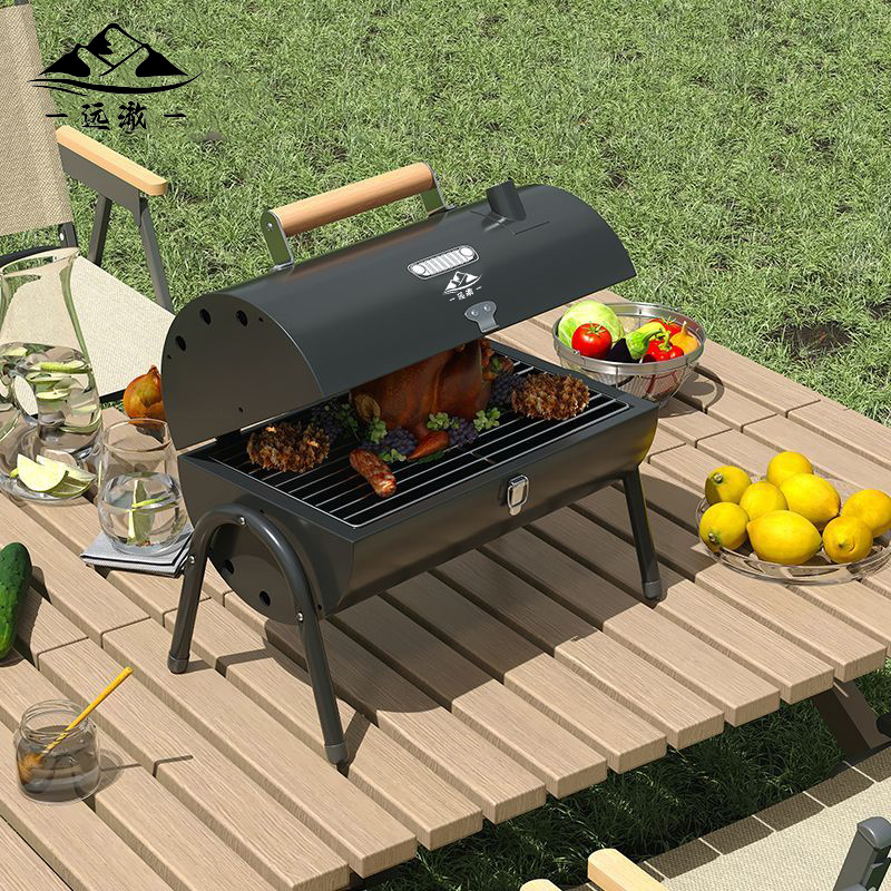 户外烧烤炉美式BBQ木炭烤肉庭院便携煎烤两用露营加厚烧烤架炉子
