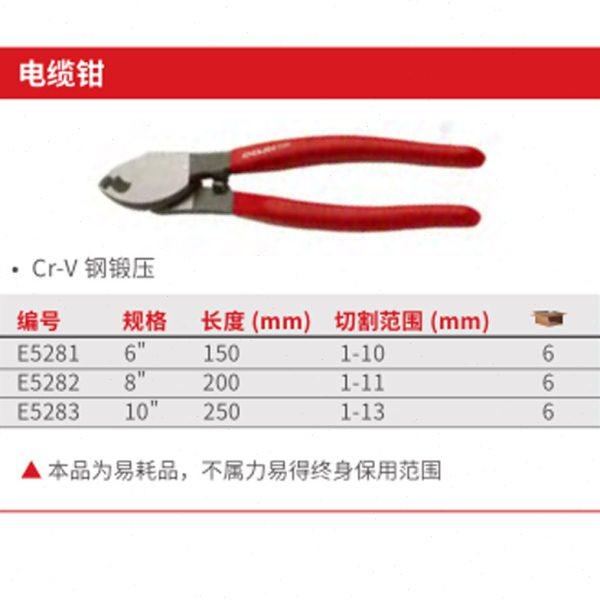 力易得CrV电缆钳电缆切割钳子电缆断线钳电缆剪E5281/E5282/E5283