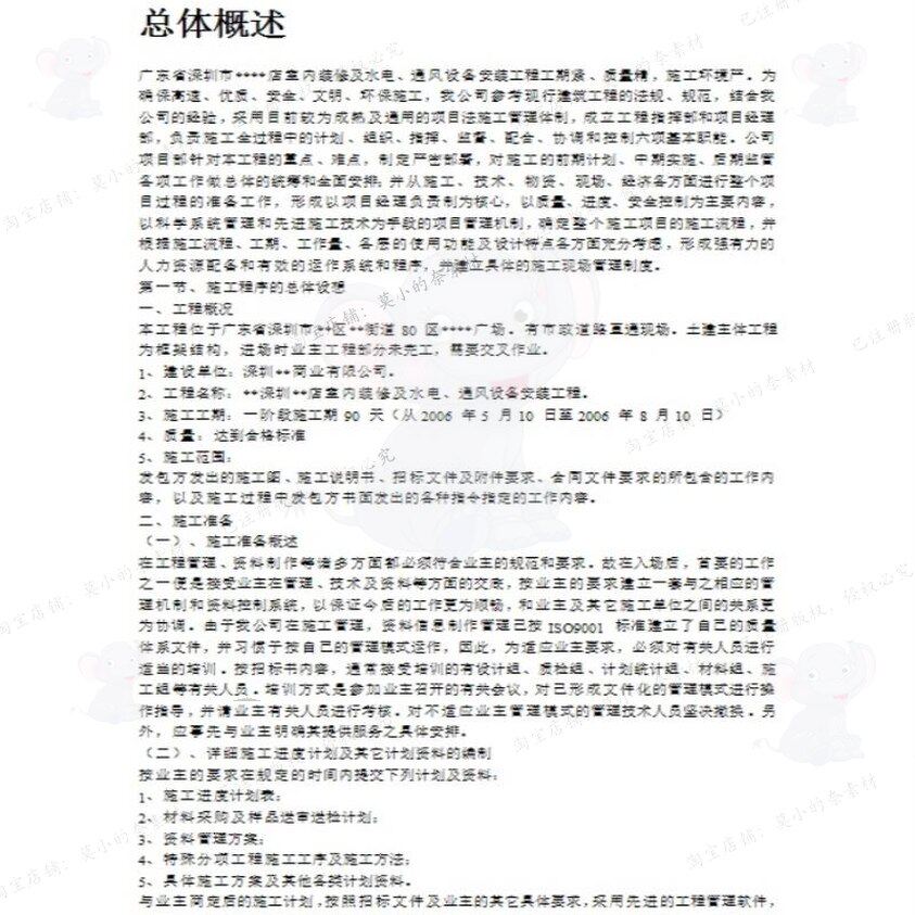 深圳某超市装修安装施工组织设计方案 组织设计设计施工方案方案