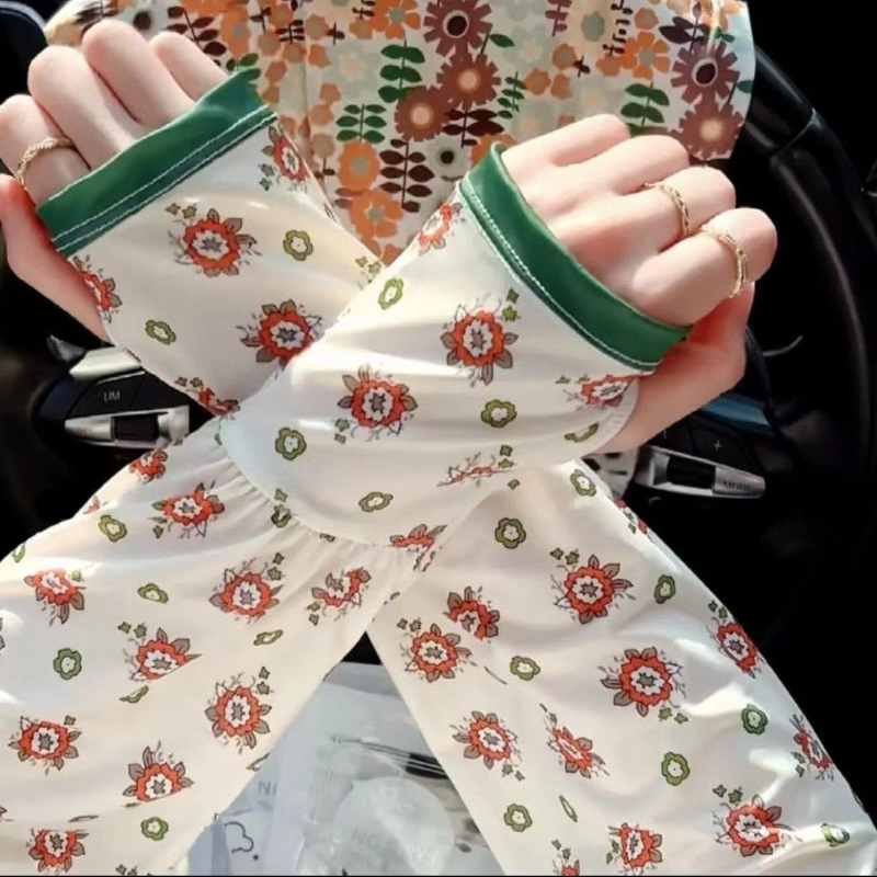 防晒袖套女夏季薄款印花百搭防护肘冰袖手套宽松版型