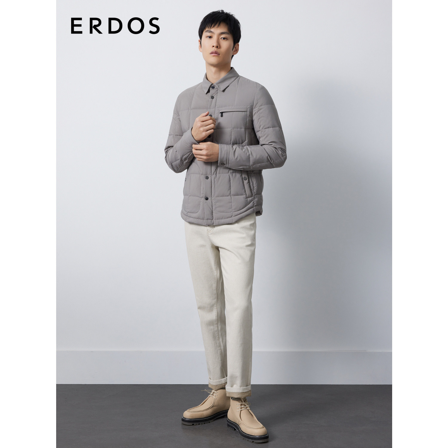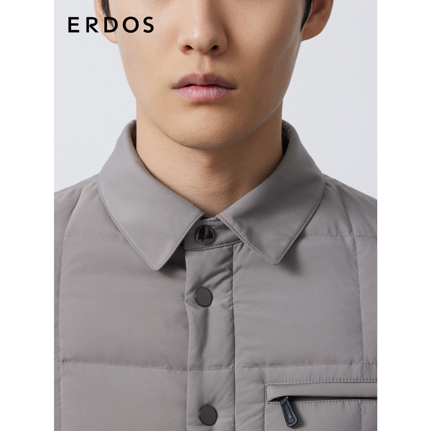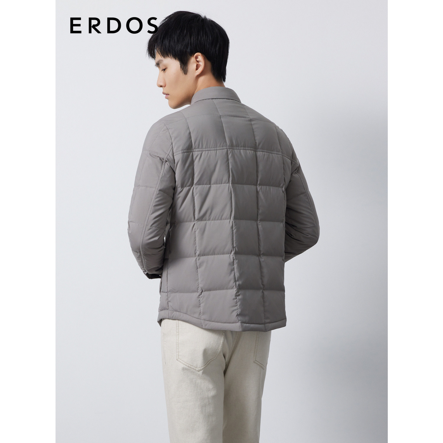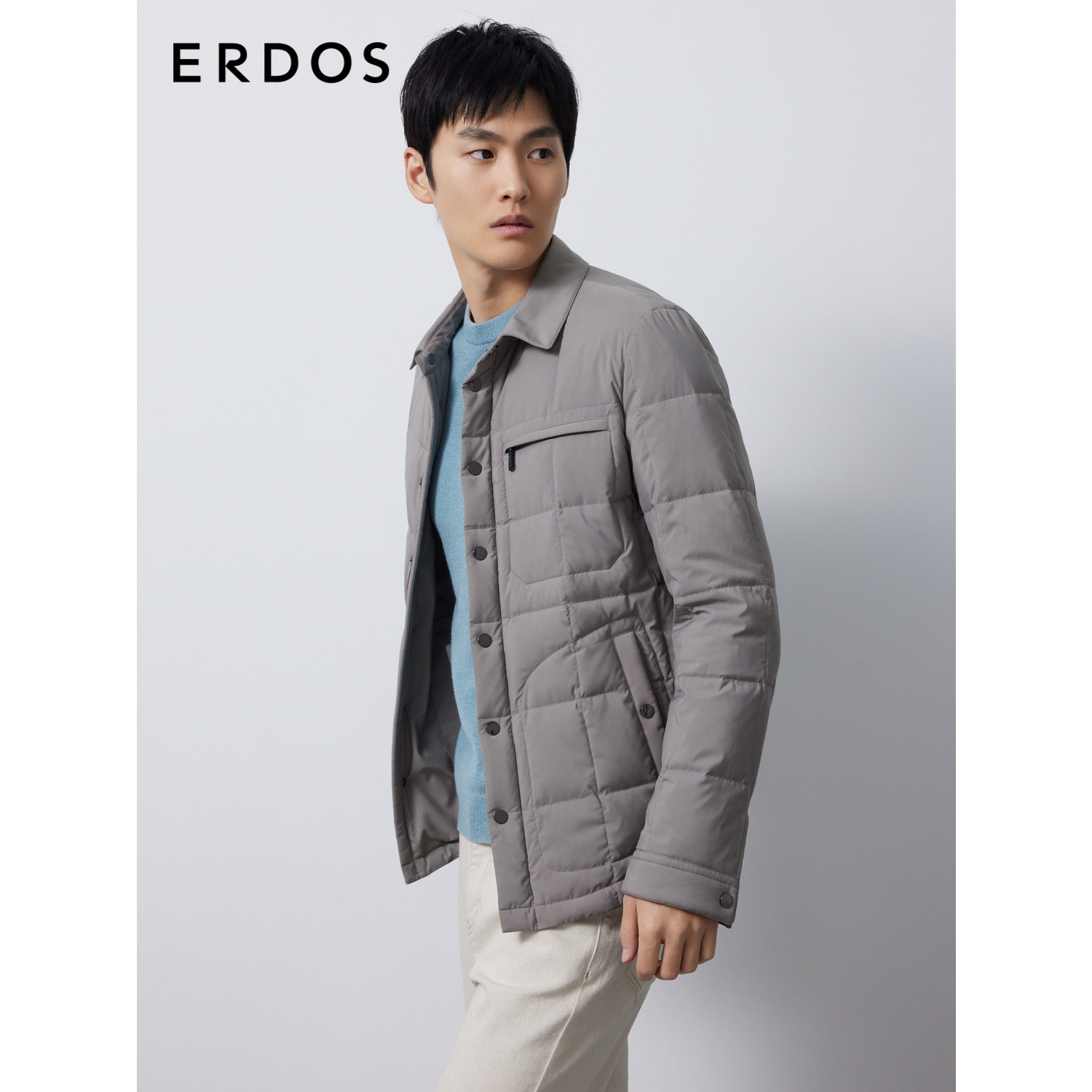 ERDOS 男装白鹅绒羽绒服秋冬灰色加厚通勤短外套含绒量90%