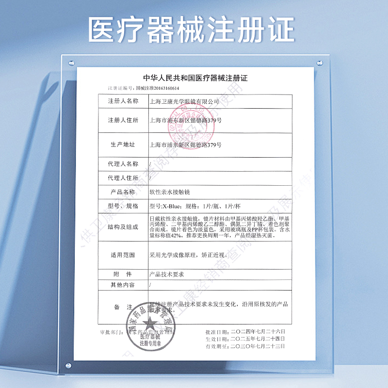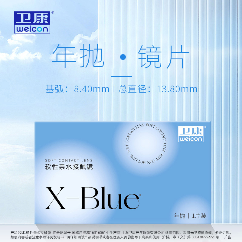 卫康x-blue隐形近视眼镜年抛水凝胶透明片隐型旗舰官网正品1片装