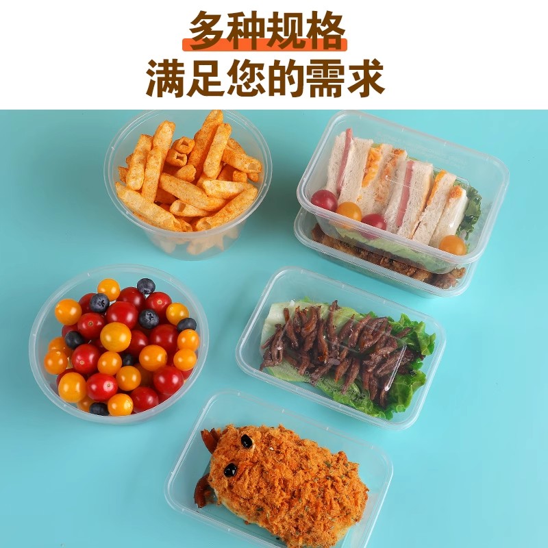 一次性打包盒食品级带盖圆形家商用批发快餐外卖专用碗微波炉方形