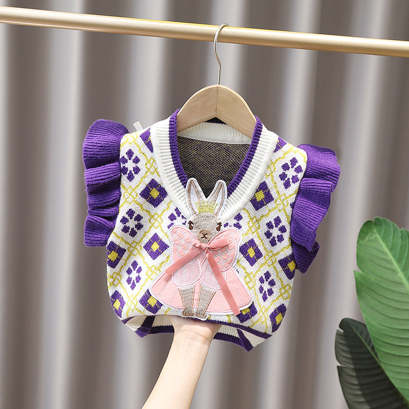 女童马甲婴儿宝宝春秋针织衫毛衣小背心婴幼儿童毛线卡通外穿坎肩