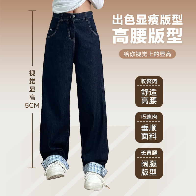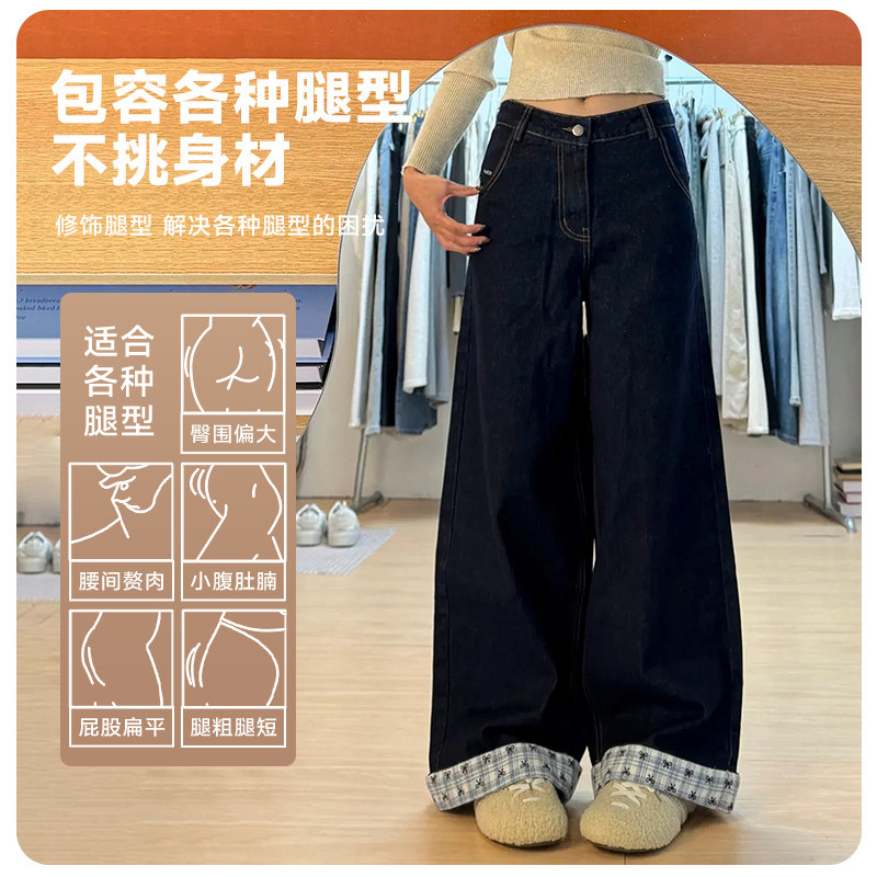 KF真维斯女款复古牛仔裤2025春新品宽松美式阔腿裤牛仔长裤女裤子