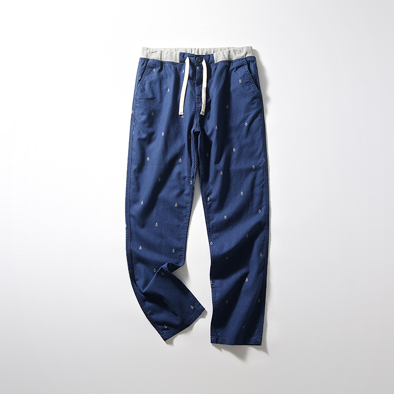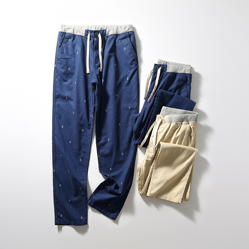 设计师线!水洗棉麻混纺!吸湿透气!夏季男士松紧腰直筒休闲长裤