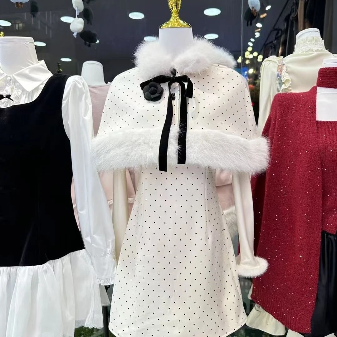 名媛新款富家香风千金连衣裙套装春款外套斗篷两件套气质秋冬新品