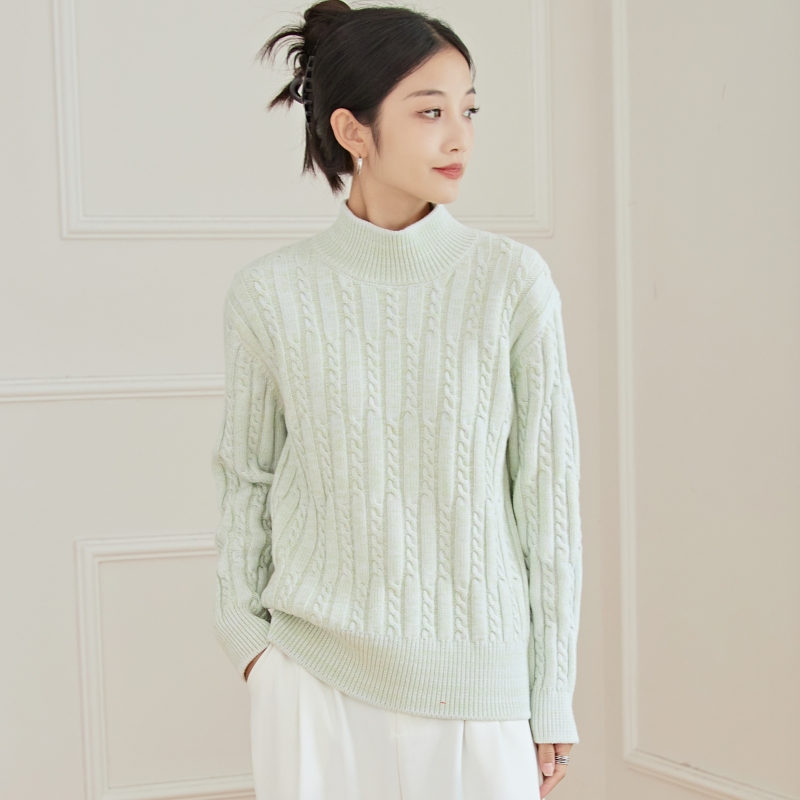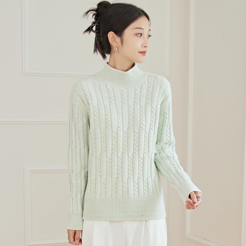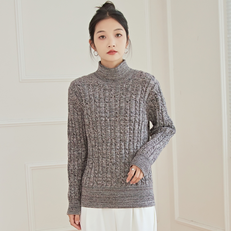 东润莲品牌原创花色加厚纯棉毛衣女秋冬半高领套头长袖针织打底衫