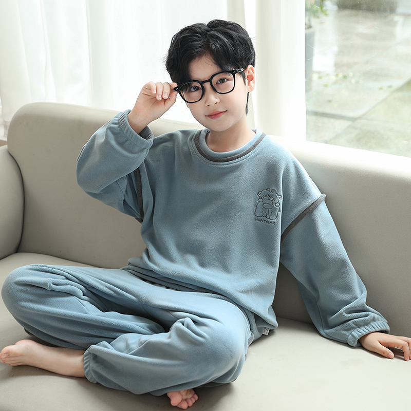 儿童法兰绒睡衣男童秋冬款加绒加厚套装中大童保暖家居服冬季外穿