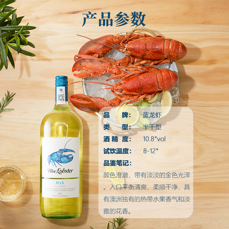 【天鹅庄官方】澳洲蓝龙虾干白MAX白葡萄酒1500ml旗舰店正品