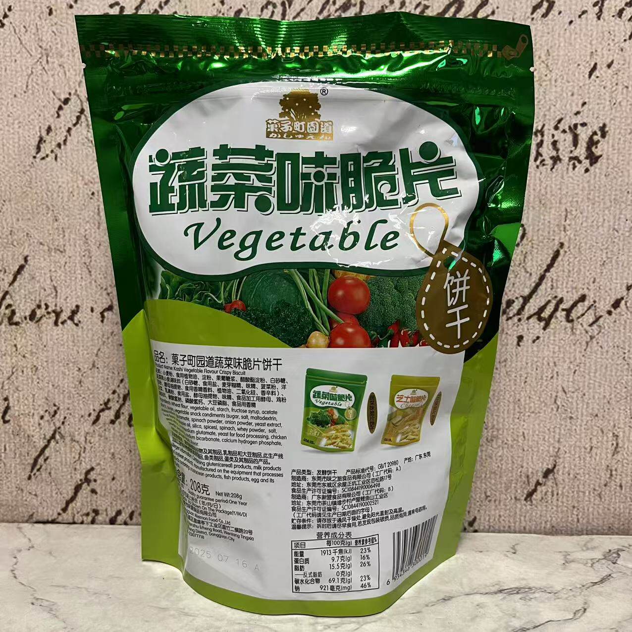 特价售卖 菓子町园道蔬菜味脆片饼干208g袋装 发酵饼干 休闲零食