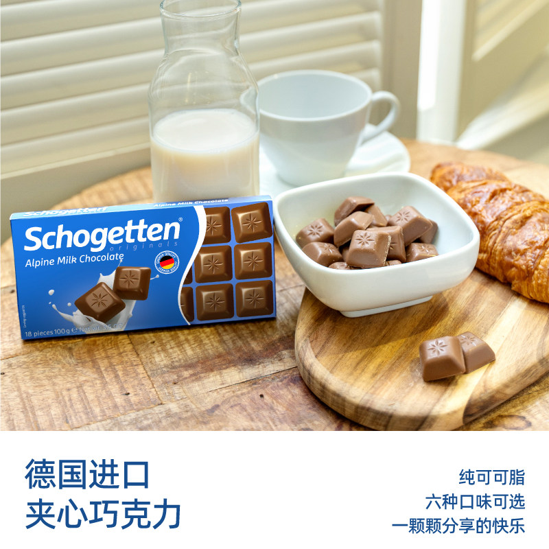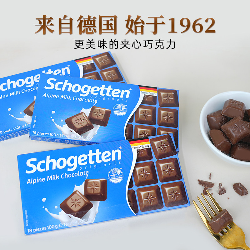 德国进口schogetten丝格德巧克力丝滑牛奶夹心黑巧纯可可脂小零食