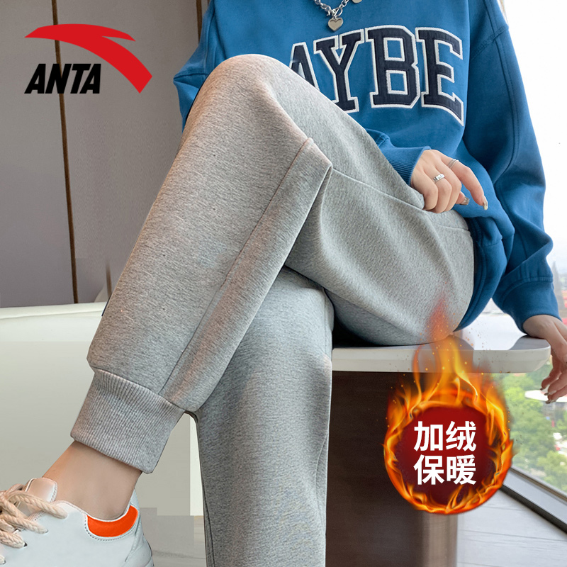 安踏运动裤女裤加绒冬季长裤宽松显瘦黑色束脚大码休闲保暖卫裤子