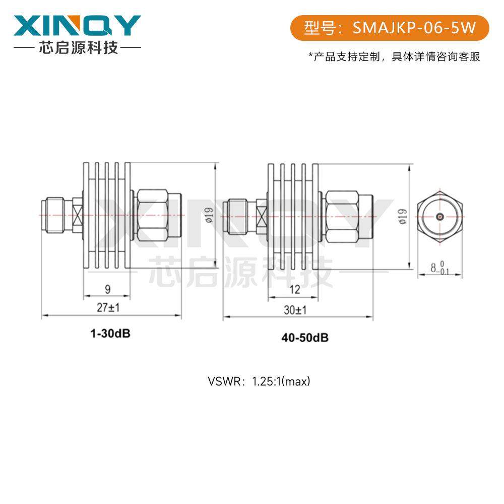 XINQY1-40dB固定衰减头5W功率衰减器6G射频衰减器sma衰减器